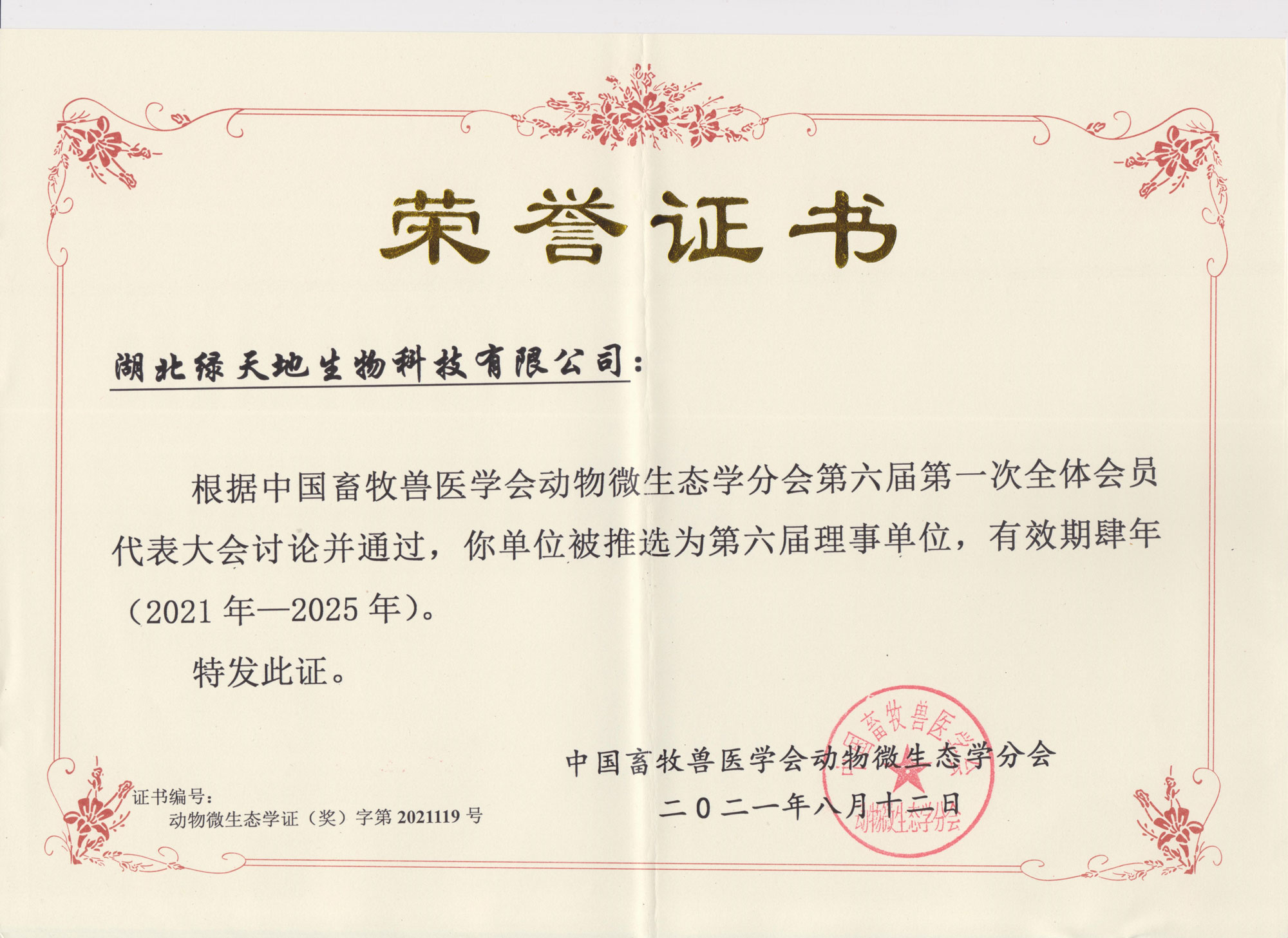 公司被推選為中國畜牧獸醫(yī)學(xué)會動物微生態(tài)學(xué)分會第六屆理事單位